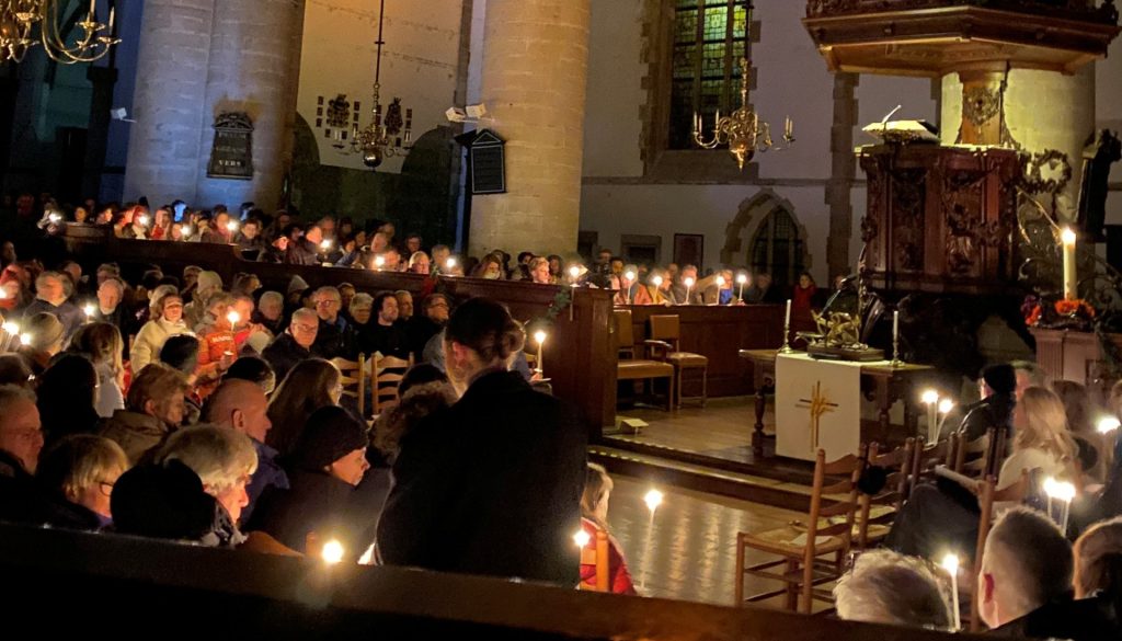 ‘Het licht schijnt in de duisternis en de duisternis heeft het niet in haar macht gekregen.’ In een donkere Grote of St.-Bavokerk werd op kerstnacht het licht ontstoken. Vanuit één vlammetje werd het licht gedeeld door de lichtdragers, Haarlemmers die zich inzetten voor mensen die zonder papieren in Haarlem verblijven. Het werd licht in de duisternis, zodat de 1200 aanwezigen elkaar weer kon zien en elkaar even heel bewust contact konden maken. Kijk hier de gehele kerstnachtviering terug of lees de overdenking van predikant Willemijn van Dijk – Heij.